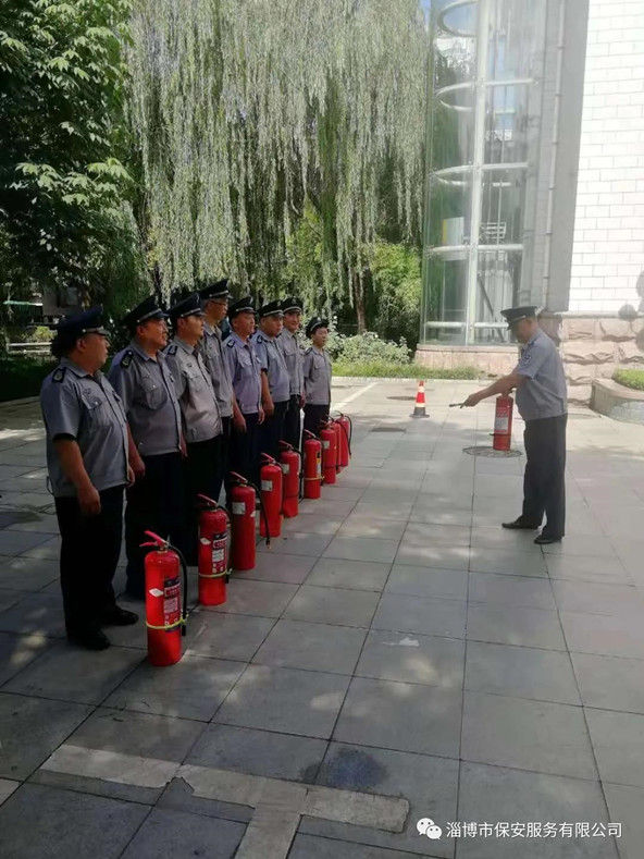 淄博市保安服務(wù)有限公司安全保衛(wèi)中心駐淄博市人大執(zhí)勤點開展消防應(yīng)急演練