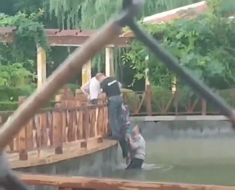 兒童公園有一名女子落水,保安員辛慶祝下水將其救起。網(wǎng)友提供視頻顯示,在該公園人工湖內(nèi),一名保安下水將女子托起,另外兩人站在欄桿附近,用力將女子拉上岸邊。辛慶?;貞浾f,女子被救上岸后并無大礙,隨后被他送離公園,辛慶祝說只是舉手之勞而已。他的舉手之勞溫暖了這座城市,更是我們身邊的凡人英雄,為他們點贊。